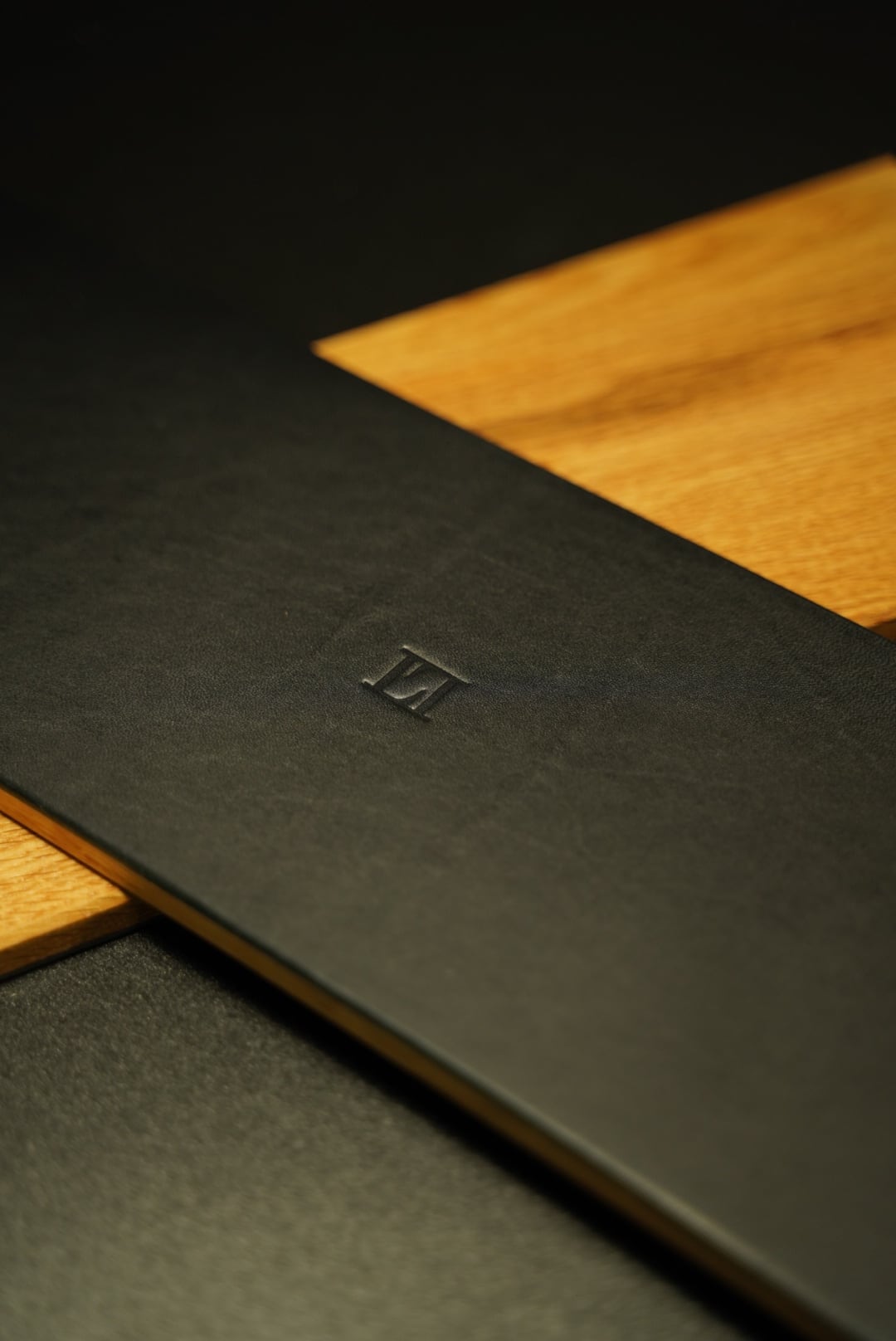 まるで革と木が一枚の板のように。
